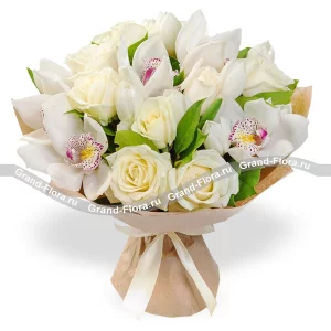 Благородство - смешанный букет из роз и орхидей