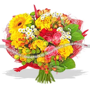С любовью и нежностью - букет из кустовых хризантем, роз и альстромерий