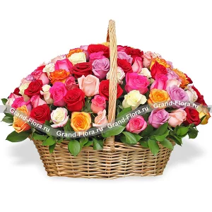Особенные чувства - букет из разноцветных роз с гипсофилой