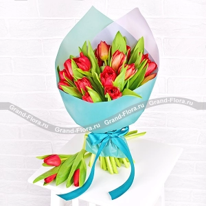 Это Любовь! - букет из красных тюльпанов с белым бантом